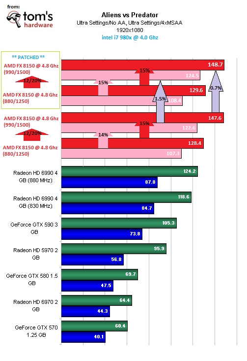 Here we see that the FX Patch brings a decent boost in performance, averaging +5.17% across all 12 tests. The largest performance increase comes in the .NET Arithmetic - Dhrystone test, where we see a +24.6% difference. This is the most significant increase in performance I have yet to see for the FX patch.